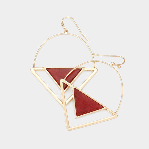 Semi Precious Triangle Accented Geometric Metal Dangle Earrings