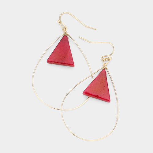 Gold Triangle Natural Stone Open Metal Teardrop Dangle Earrings