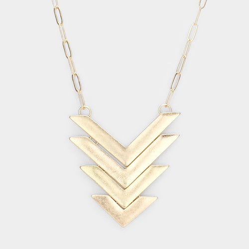 White & Gold Marbled Hexagon Pendant Double Layered Necklace