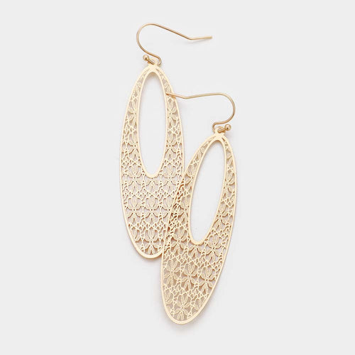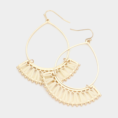 Gold & Gray Wrapped Thread Open Metal Teardrop Dangle Earrings