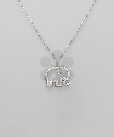 Rhodium/Clear Rhinestone Paved CZ Elephant Necklace
